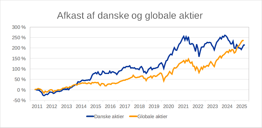 Afkast af danske og globale aktier fra 2011 til 2025. Kilde: Aktienedtur rammer danskerne hårdt | Børsen