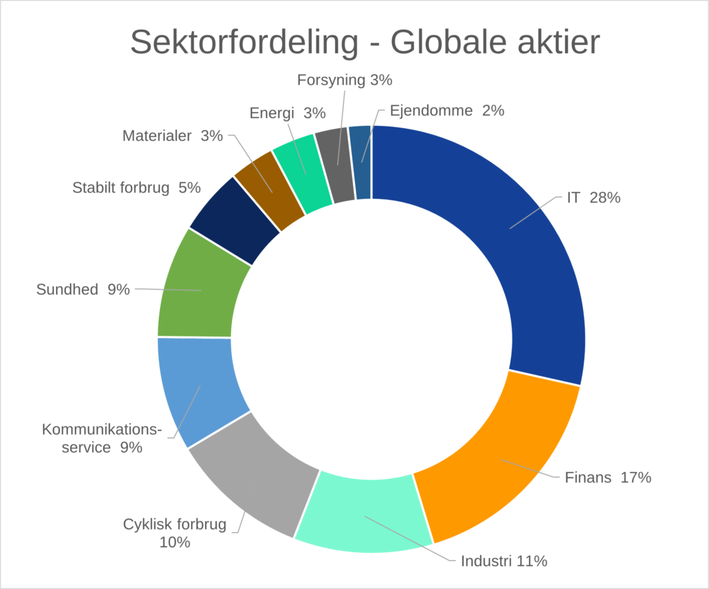 Sektorfordeling i % for globale og danske aktier. Kilde: Aktienedtur rammer danskerne hårdt | Børsen