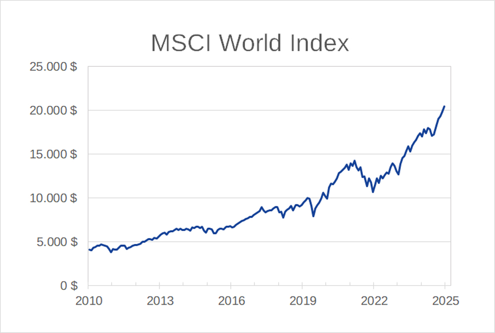 MSCI WORLD INDEX 2010-2025. Kilde: MSCI World Index
