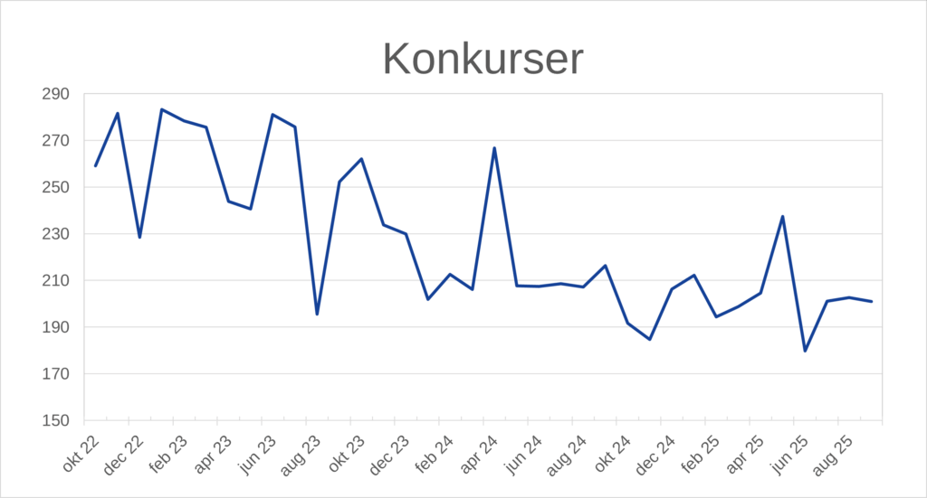Konkurser i aktive virksomheder, sæsonkorrigeret.