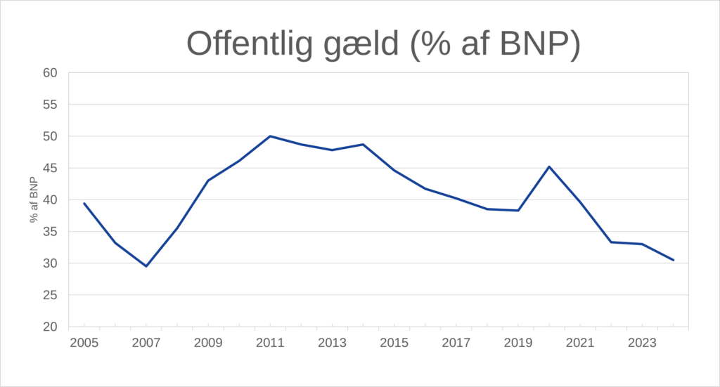 Offentlig ØMU-gæld opgjort som pct. af BNP.
