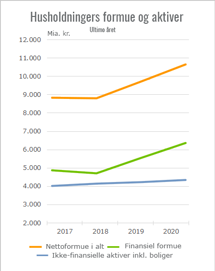 Udvikling i husholdningernes formue og aktiver fra 2017-2020 og 1. til 4. kvartal 2020. Kilde: Danmarks Statistik, Danskernes samlede formue endte i ny rekord